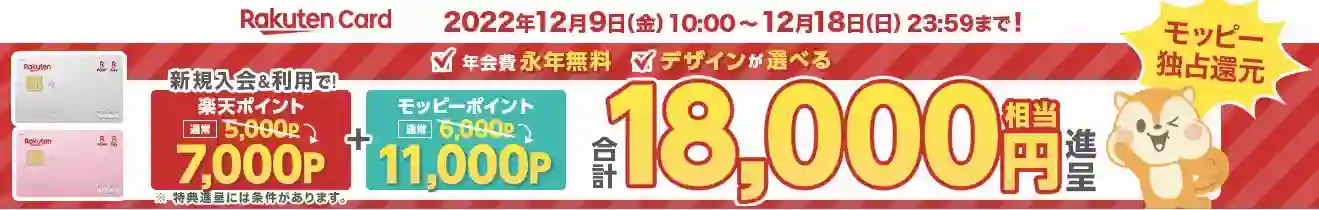 | モッピーから楽天カード作成 | モッピーポイント | 14,000ポイント | 楽天カード発行後45日前後 |